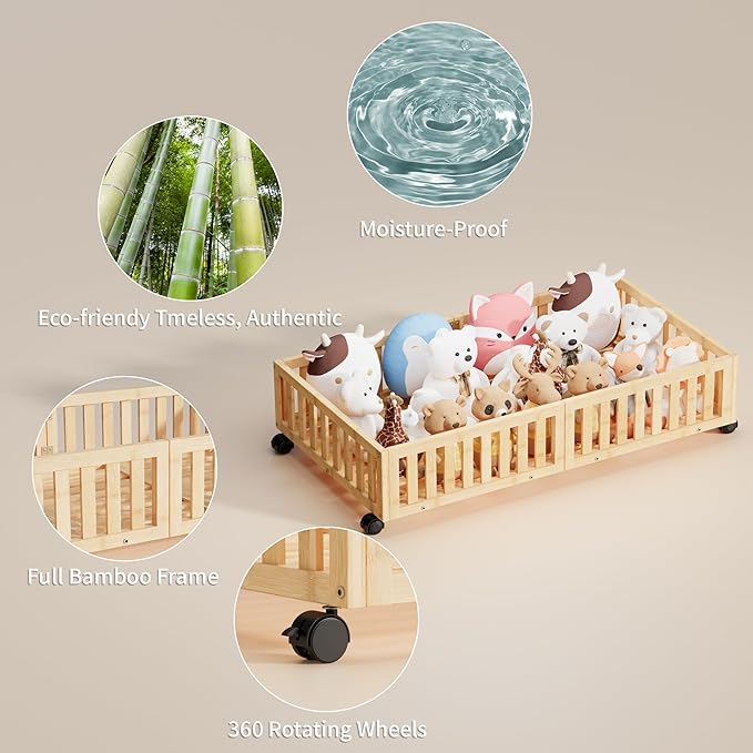 - Ventilated Design: The slatted bamboo design promotes air circulation, preventing musty odors and keeping your stored items fresh. A smart choice for under the bed storage with wheels to maintain item quality.