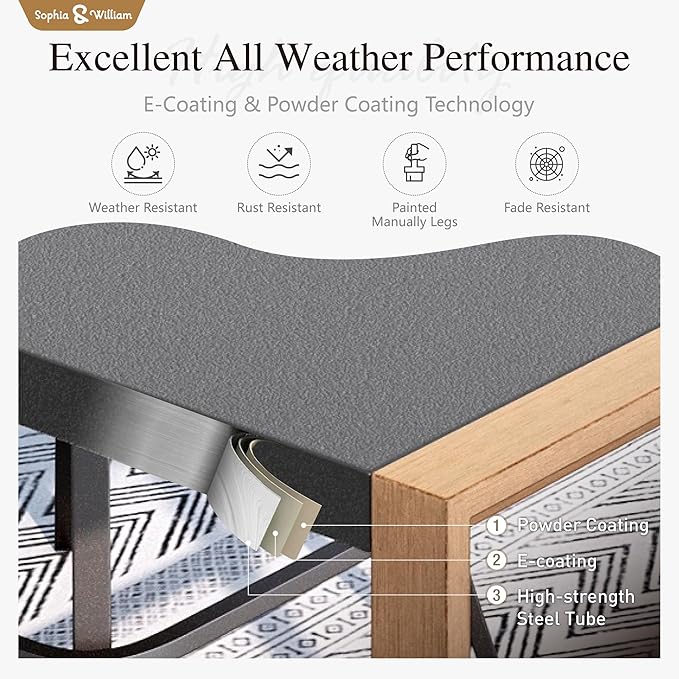 - Dual-Texture Premium Design: Featuring a striking Larimar tabletop paired with natural woodgrain legs, combining contemporary aesthetics with rugged durability. Perfect complement to modern patios,decks