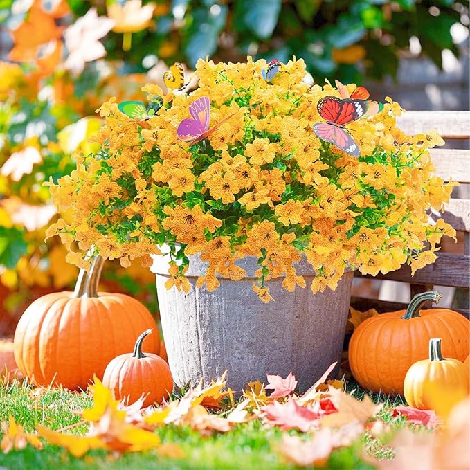 - Realistic Fall Flowers and Butterflies: These artificial outdoor plants with eucalyptus Leaves look real and very lifelike. Paired with the scene of butterflies fluttering among the flowers, it creates a cozy ambiance and brings the colourful flourish beauty of nature into your life.