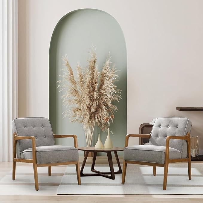 Linen Accent Chair Set of 2, Mid Century Modern Chair for Living Room, Upholstered Comfy Lounge Armchair with Solid Wood Frame, Reading Side Chair for Bedroom,105°Ergonomic Comfort, Grey