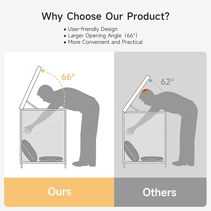 - Functional Innovation: Equipped with 200 N pneumatic pistons for smooth lid operation. The increased opening angle up to 66Β° ensures security by reducing the risk of head bumps during use. A widened gap reduces friction, extending the life of your deck storage box. Experience ease of use and enhanced security with every interaction, making your daily routine more enjoyable.