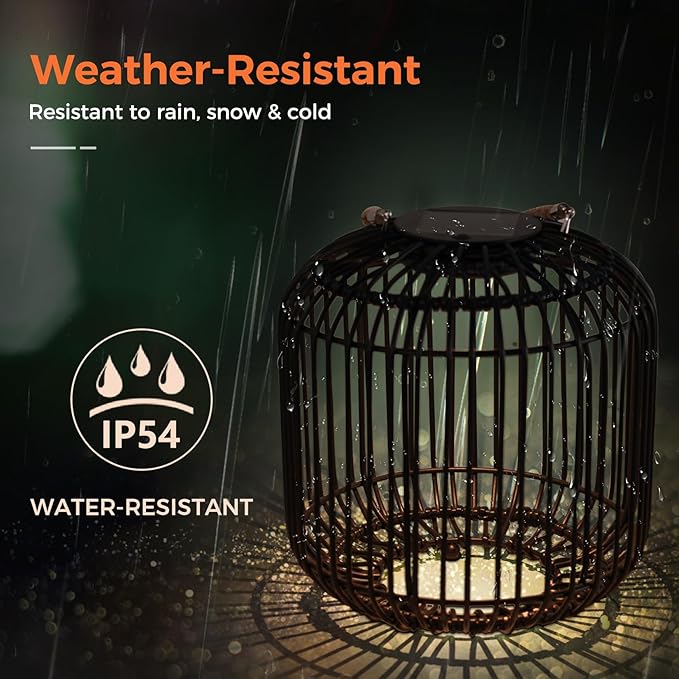 - LOW-MAINTENANCE: Constructed with a powder-coated steel and weather-resistant wicker, this lights withstands IP54-rated rain, wind, and sun exposure. Non-slip base ensures stability guarantee lasting beauty season after season
