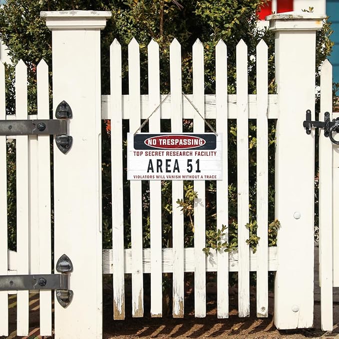 Warning Sign, Area 51 No Trespassing Warning Wood Plaque Sign, Funny Door Signs, Decorative Wood Hanging Suspension Plaque, Farmhouse Wooden Wall Decor