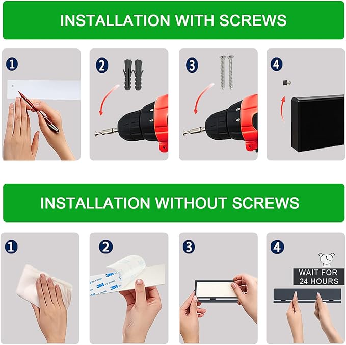 - 【Dual Installation Freedom (Drill or No Drill)】Our magnetic knife holder for wall no drill offers versatile mounting options—quickly install using adhesive (wait 24 hours) on smooth surfaces like tile, glass, wood, and metal (Not for stucco, wallpaper, or gypsum walls), or permanently secure it with screws. Note: Not suitable for direct magnet attachment to fridge surface.