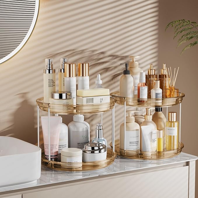LAMU 2 Pack 2 Tier Lazy Susan Turntable Organizer 9.25'' Rotating Spice Rack Organization for Cabinet, Kitchen, Pantry, Countertop, Bathroom, Vanity, Medicine Cabinet Organizer, Amber