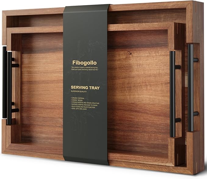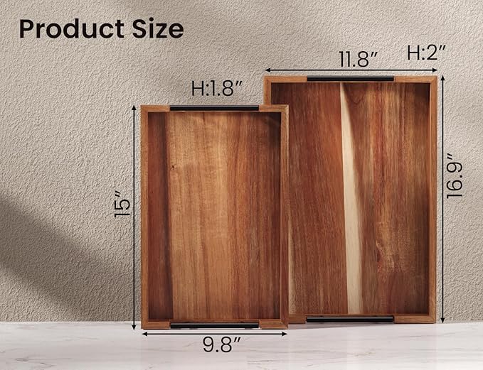 - 【Premium Material, beautiful and durable】 Crafted from carefully selected natural Acacia Wood, this piece retains the delicate tactile feel of the original wood grain. The surface is hand-polished and treated with eco-friendly lacquer, achieving a smooth and lustrous finish that is moisture-resistant and durable. The natural subtle fragrance and understated hues of the Acacia Wood imbue the tray with a rustic charm, allowing it to harmoniously integrate into any space while fostering a serene and soothing ambiance.