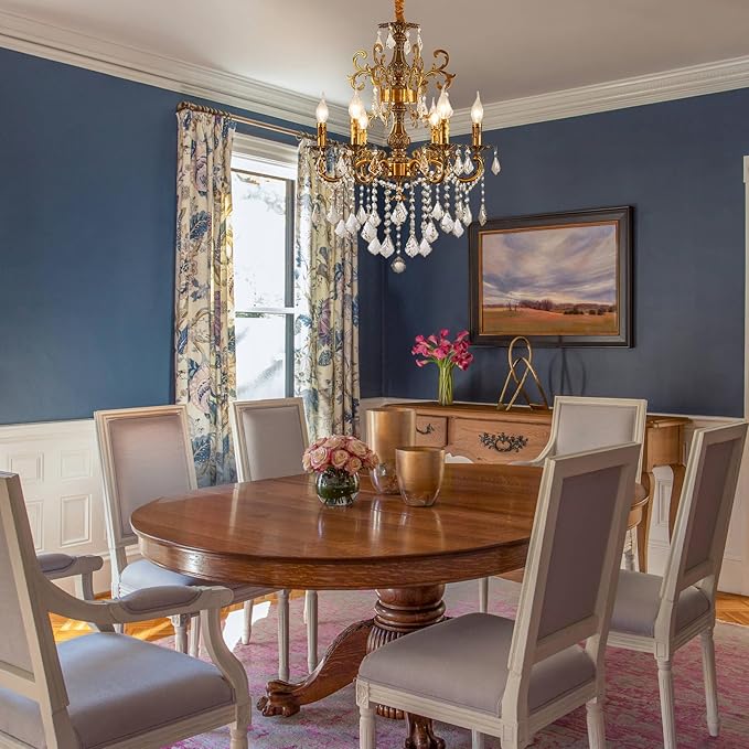 Vintage 6 Arms Crystal Chandelier Candle Light Fixture for Dining Room Living Room Bedroom Hallway Entryway Antique Gold Finish (23"-6 Lights)
