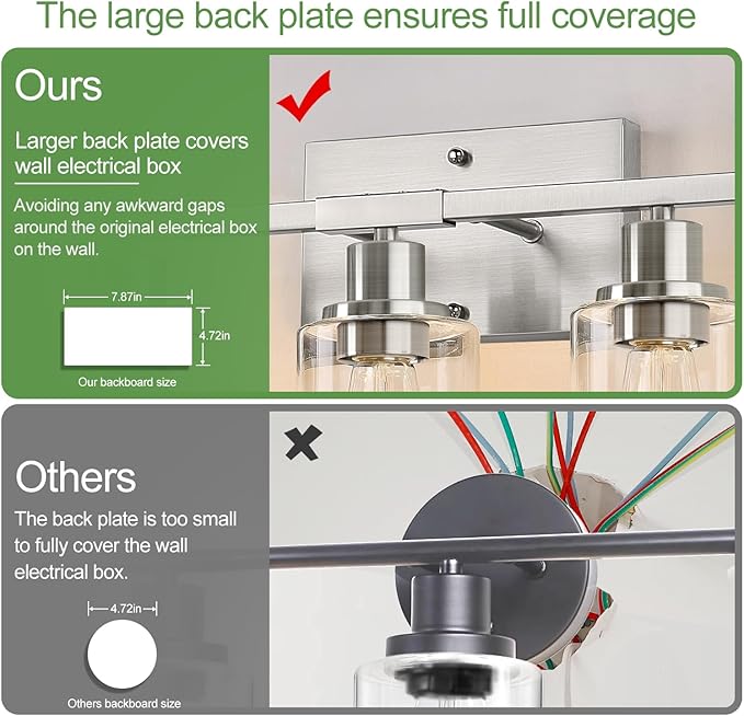 - Premium Durability & Finish: Made from premium metal, this brushed nickel bathroom light fixture is built to last — the sturdy lamp arms won’t bend or warp easily. The upgraded finish adds a sleek, elegant look while resisting scratches, stains, and fingerprints, helping your light stay looking new for years to come.