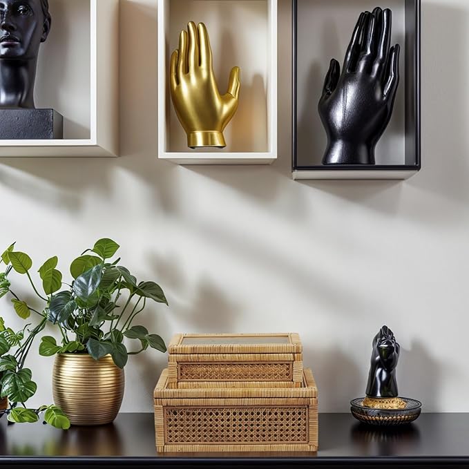 - Our versatile Rattan Box with Lid is not just a decorative piece but also a practical storage solution. Use it to organize remote controls for your living room TV, store jewelry in your bedroom, or keep bathroom essentials tidy. Its stackable design allows for efficient space utilization, making it a must-have for any home.