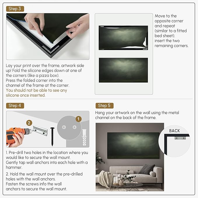 - Assembly Required: The artwork comes with the frame components unassembled. Don’t worry — setup is straightforward and tool-friendly. For best results and accurate alignment, we recommend two people to ensure a smooth assembly and a stable, secure wall mount.