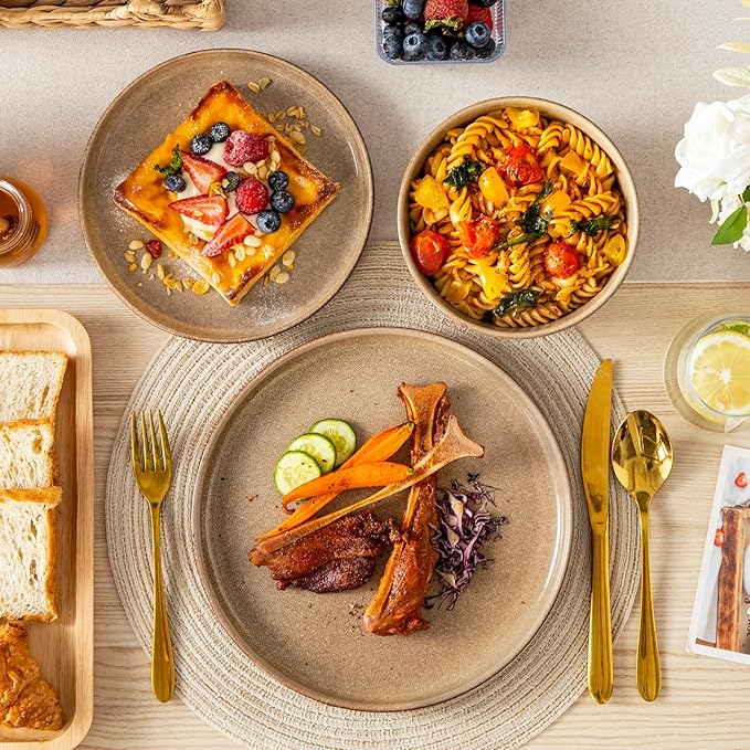 - 【Durable & Scratch-Resistant Stoneware】Made from high-fired stoneware, this set is strong, chip-resistant, and built to last. It resists wear and tear from daily use while maintaining its elegant appearance over time.