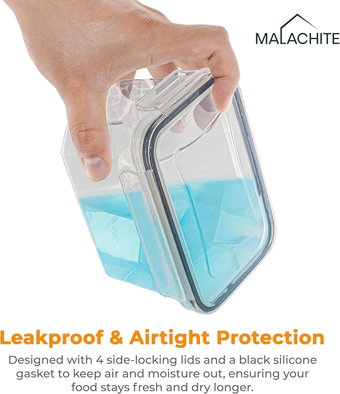 - Airtight for Lasting Freshness—longer-lasting, fresher ingredients are now possible with containers that have rubber-sealed lids and latches that lock on all four sides
