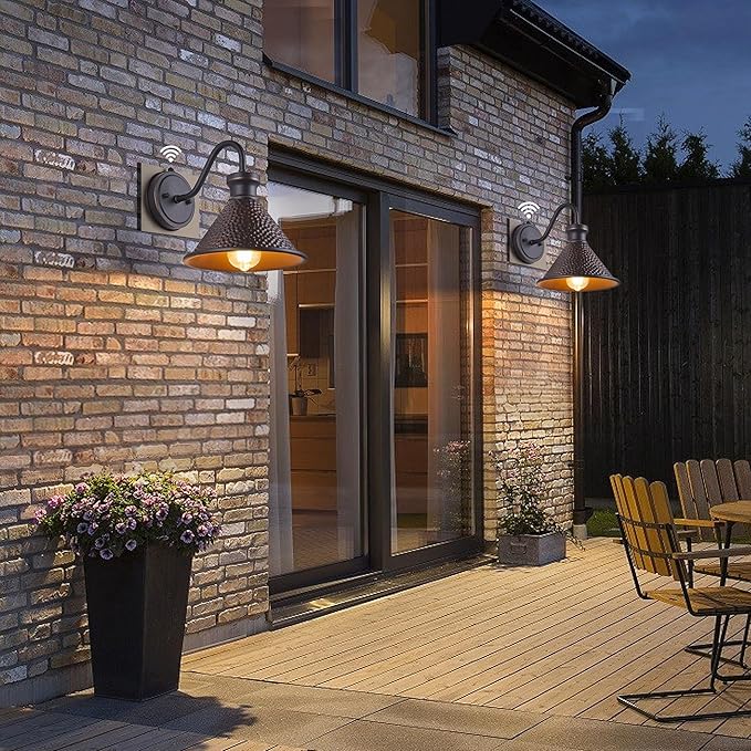 - 【Dusk to Dawn Photocell Sensors】: Our 2 sets of dusk to dawn outdoor lights utilize advanced dusk to dawn sensors that can sensitively detect the surrounding brightness and automatically turn on at dusk and off at dawn. They are energy efficient wall sconces that save you electricity and provide easy on/off access to outdoor wall lights. This classic never outdoor outdated outdoor wall sconce will simplify your daily life.