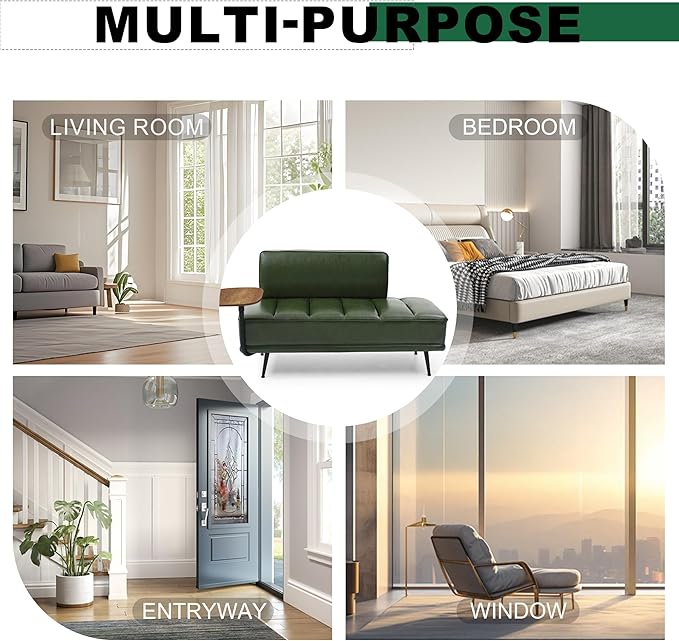 Sofa,Bed Bench,Small Spaces Furniture,Polyurethane Leather,Wood Frame,High Density Sponge Infillings,360-Degree Swivel Tray,Black Metal Leg (Green)