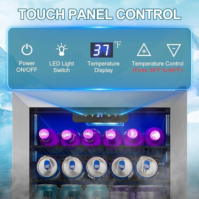 - SMART TOUCH CONTROL PANEL: The mini beverage fridge features a user-friendly touch control panel for easy temperature adjustments (34Β° Fβ64Β° F), giving you full control over your cooling experience and complementing modern lifestyles.