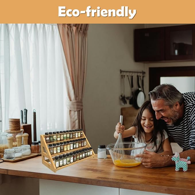 - Space Saving Design: 3-tiered bamboo spice rack maximizes vertical storage space in your kitchen cabinet or countertop, allowing organized storage of spices jars and seasoning jars