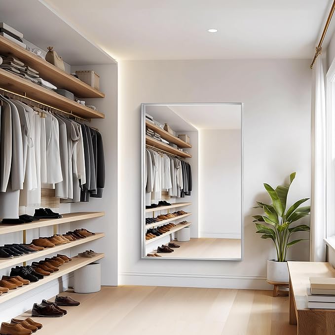 - Sleek & Sturdy Aluminum Alloy Frame This elegant silver bathroom mirror features a lightweight yet durable aluminum alloy frame, designed to resist deformation, chipping, and corrosion. The slim metallic profile adds a modern touch, elevating your space with a luxurious finish. Perfect as a wall-mounted or hanging mirror, it combines strength, style, and longevity