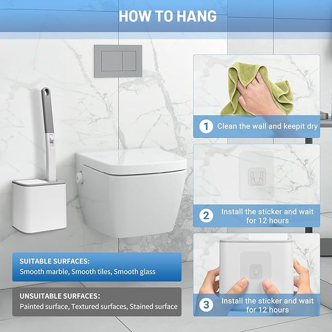 - 🚽Easy to Use】Push the button to clamp the disposable toilet brush refills, and clean the toilet. After cleaning, pull the button to toss the used head into the trash. It makes the whole toilet cleaning process much easier and great fun.