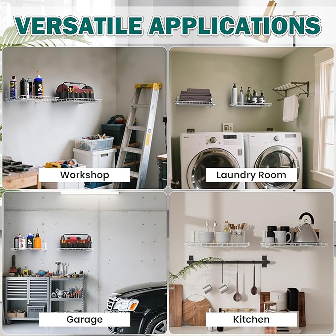 - Durable Steel Construction: Made from high-quality steel with a rust-resistant powder-coated finish, each wall shelf supports up to 60 lbs and ensures long-lasting stability and durability, even in humid environments