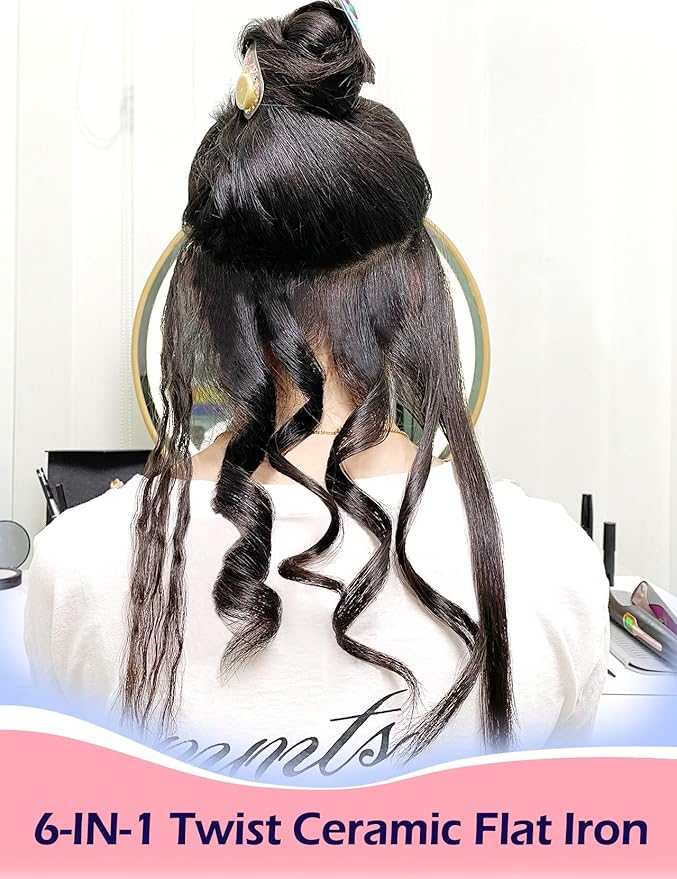 - 🌟【SALON GRADE STRAIGHTENER AND CURLER 2 IN 1】The unique 3D twist titanium plate has a fast, even heat, sleek edge design, whether you want to do elastic curls, or do silky straight hair, just adjust the Angle and temperature to easily achieve.