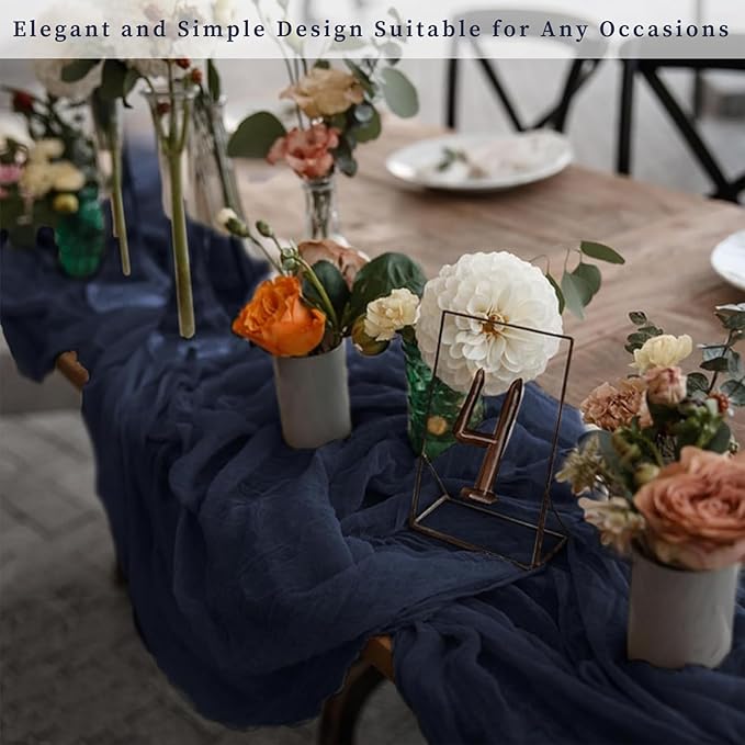 - Cheesecloth Table Runner Size: You will receive 20 navy blue cheesecloth tablerunner, each measuring 20 x 120 inches. The quantity is sufficient for you to decorate various romantic occasions. It can decorate most shaped tables, such as rectangular tables, round tables, and cocktail tables. It is long enough to decorate a large table and be placed perfectly and elegantly on the tabletop, adding a romantic atmosphere to your occasion.