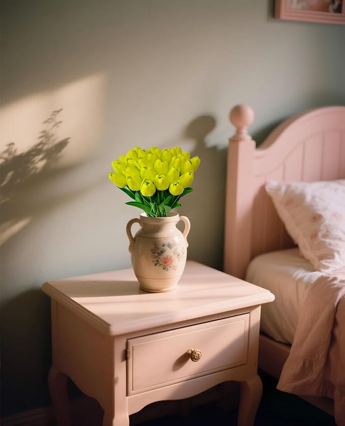- EASY CARE: Compared with fresh tulips, our artificial tulips retain the beauty of fresh flowers and are easier to care for and durable. If there is any dust on the tulips, please gently wipe it with a damp cloth