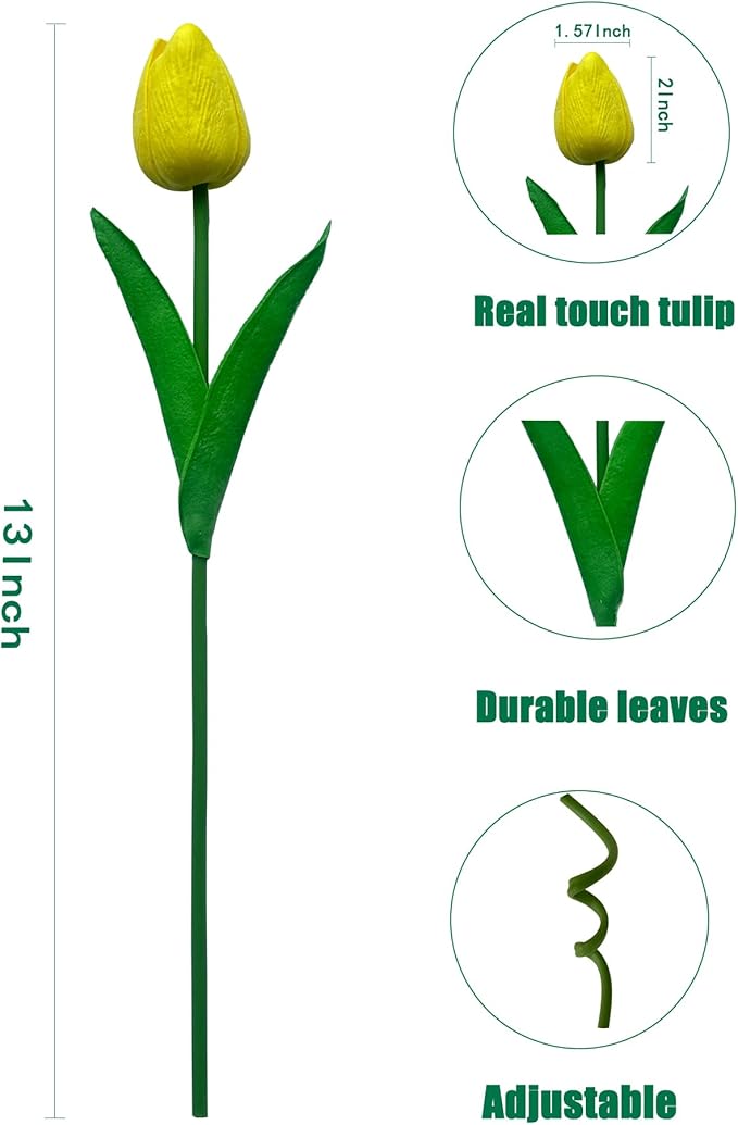 - MATERIAL: Our artificial tulips are made of plastic and polyurethane, which has a soft texture and a realistic touch. Inside the stem is durable wire that can be easily bent and cut to fit different vases as needed