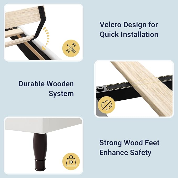 - No Box Spring Needed: With velcro wooden slats provide even easily assembled, also to prevent your mattress from slipping, provide reliable support for your mattress without the need for a box spring. Weight capacity: 1000 Lbs.