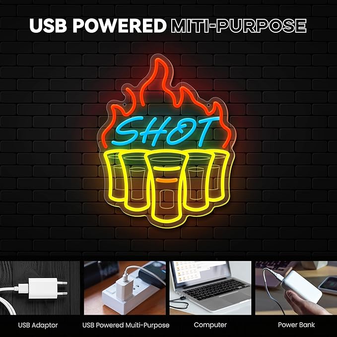 - 【Shot Neon Sign】 I believe that many people like to drink shot wine. This neon light can perfectly create a hot, joyful and tipsy atmosphere, making people can't wait to drink a glass of shot wine and let the alcohol bloom hotly in their mouths.