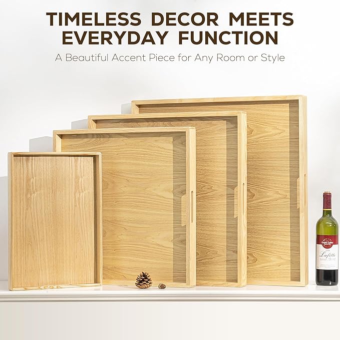 - Multiple Functional Features: The serving tray fits for brunches and parties to an elegant coffee table organizer for remotes, books, and candles. The large tray versatile design works well in living rooms, bedrooms, kitchens, and outdoor patios