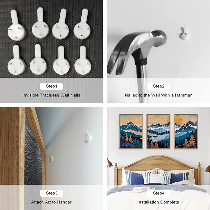 - 【Blue Woodcut Mountain Wall Art Set】This blue woodcut mountain framed canvas wall art set executed in a charming nature style, captures mountains and trees, evoking an poetic atmosphere. Its modern organic aesthetic is reminiscent of nature charm. Utilizing this artwork as part of your decor will make your room full of poetry.