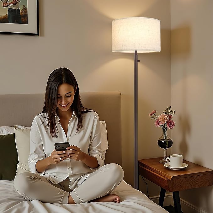 - Soft ambient light: The linen lampshade effectively diffuses the bulb's light, casting a comfortable, soft glow. Whether in the living room, bedroom, or nursery, this floor lamp complements any decor seamlessly and enhances the ambiance.