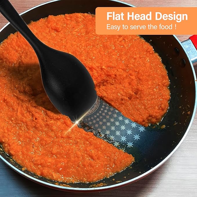 - š³ćAnti-Scratch & Premium SiliconećThis large silicone cooking spoon set are made of top grade 100% BPA-free silicone material. It also comes with a non-stick surface, which won't scratch your non-stick cookware.The heat-resistant silicone withstands temperatures up to 480°F (250°C), ideal for searing meats, simmering sauces, or baking. Its flexible edge adapts to pan contours, while the slotted design drains excess oil or broth for healthier meals.