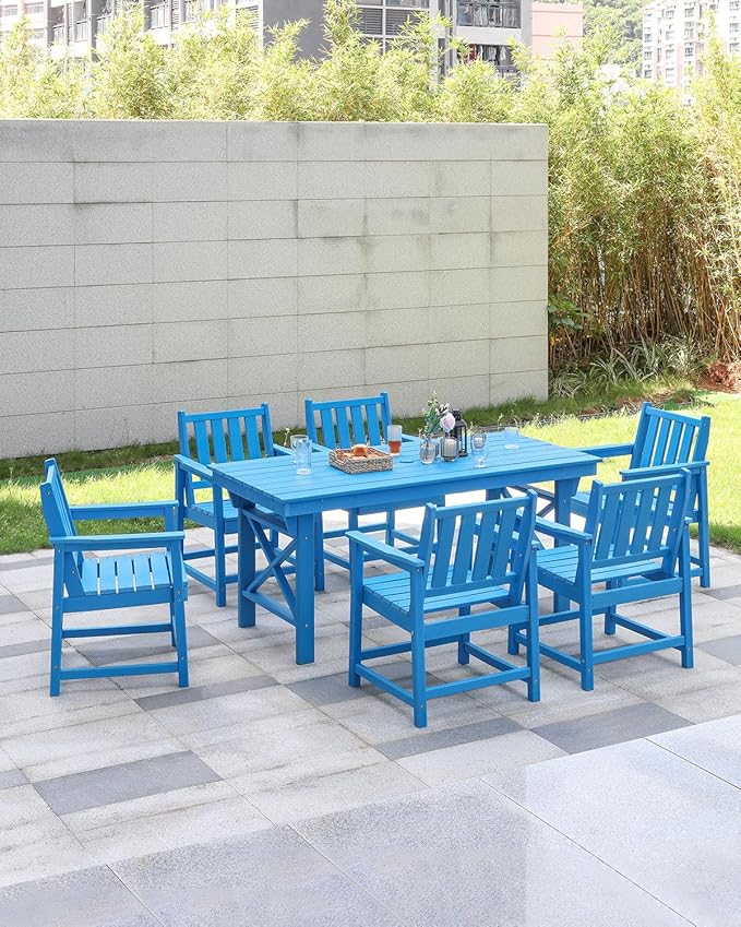 - Versatile Seating for Multiple Occasions: Sized at 22.8"L x 22"W, these chairs fit well with most patio dining tables, including SeeHill’s matching sets. Whether you’re hosting a garden brunch, poolside party, or casual family dinner, this 2-pack adds flexible, stylish seating that complements any outdoor décor. Choose the sky blue finish to introduce a cheerful yet calming accent that works across a wide variety of design themes.