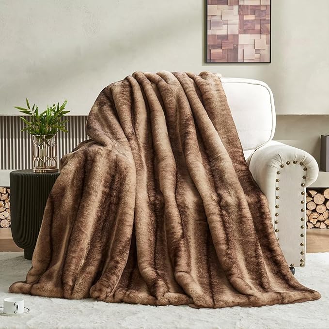 Luxury Faux Fur Blanket - Soft Warm Plush Blankets for Couch Sofa Bed, Fluffy Thick Throws for Bedroom, Office, Living Room, Decorative Reversible, Not Easy to shed - 70"x90", Brown