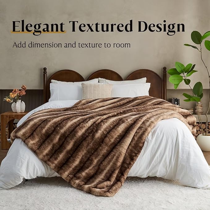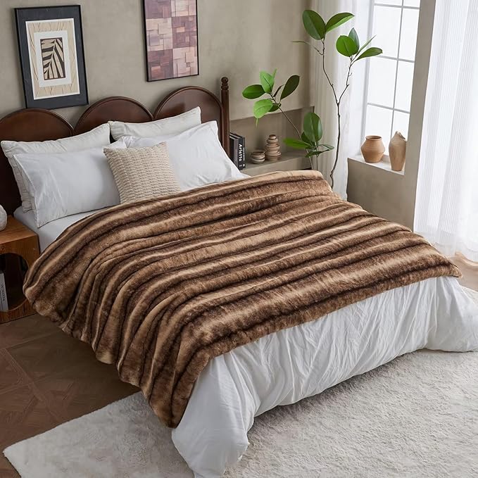 Luxury Faux Fur Blanket - Soft Warm Plush Blankets for Couch Sofa Bed, Fluffy Thick Throws for Bedroom, Office, Living Room, Decorative Reversible, Not Easy to shed - 50"x60", Brown