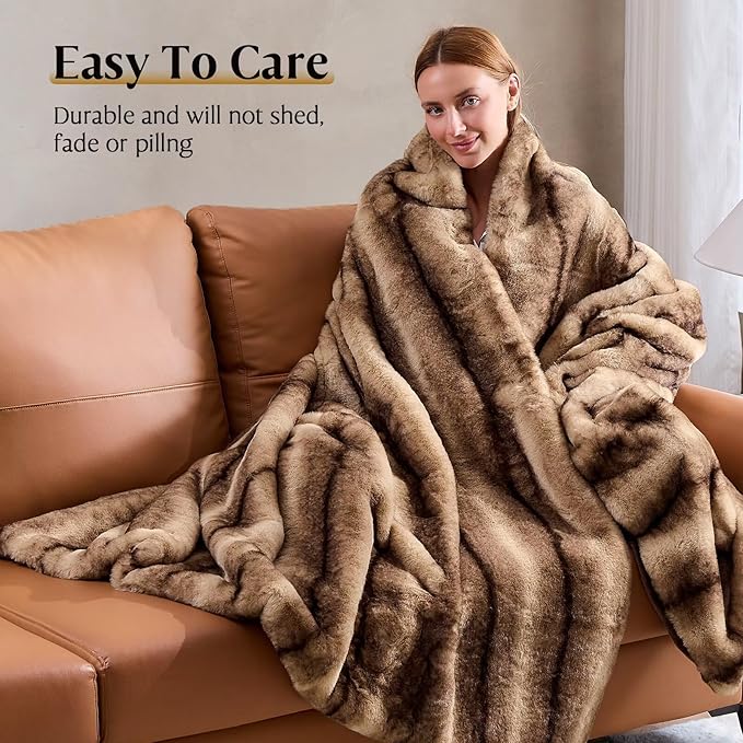 Luxury Faux Fur Blanket - Soft Warm Plush Blankets for Couch Sofa Bed, Fluffy Thick Throws for Bedroom, Office, Living Room, Decorative Reversible, Not Easy to shed - 60"x80", Brown