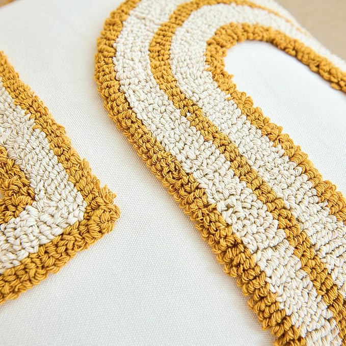 - ⭐【FABRIC AND SIZE】The front of this boho couch pillow cover is made of 100% polyester + 10% viscose,the backside is made of 100% cotton.Measures 18x18 inches.Exquisite workmanship enables tufting part dense soft and aesthetic.The 3D effect with the tufting technic makes these abstract pillow covers so distinctive