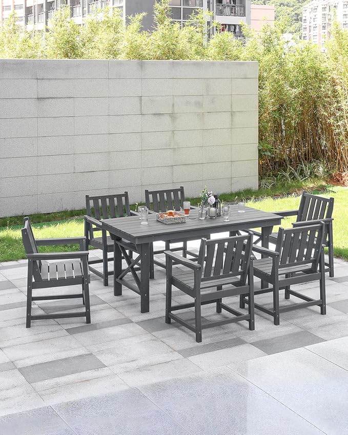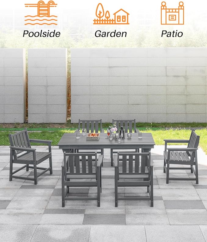 - Flexible Seating for Any Event: Measuring 22.8"L x 22"W, these chairs fit perfectly with most patio dining tables, including SeeHill’s coordinated sets. Whether it’s a garden brunch, poolside gathering, barbecue, or casual family meal, this 2-pack adds stylish, adaptable seating. The smoke gray color pairs effortlessly with modern, industrial, or minimalist outdoor styles for a sleek, understated look.