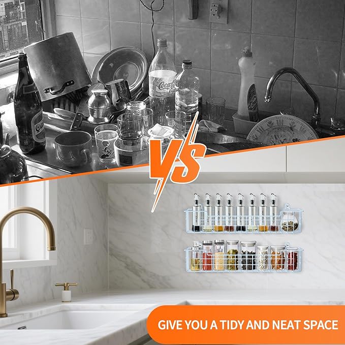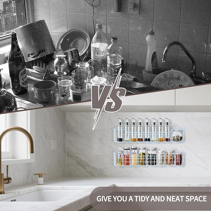 - Versatile Wall Spice Rack: Perfect for kitchens, bedrooms, bathrooms, or RVs. This space-saving spice shelf adds stylish storage anywhere while keeping essentials within reach