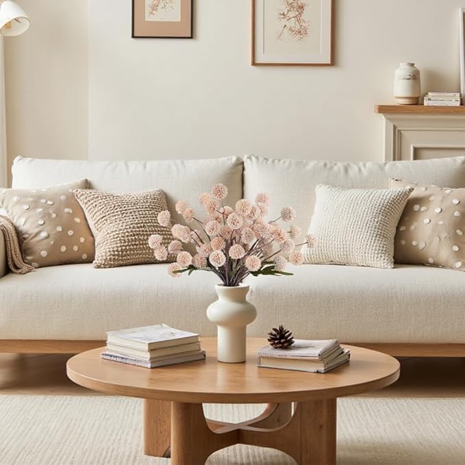 - Elegant Beige Faux Kiku Flowers: This autumn artificial chrysanthemums flowers mimics the beauty of a real flower while providing long-lasting appeal, with eucalyptus sprigs and simulated plant stems for a sophisticated and timeless look that is perfect for fall table centerpieces or wedding decorations. Each set includes 10 beige chrysanthemum stems and 2 eucalyptus branches