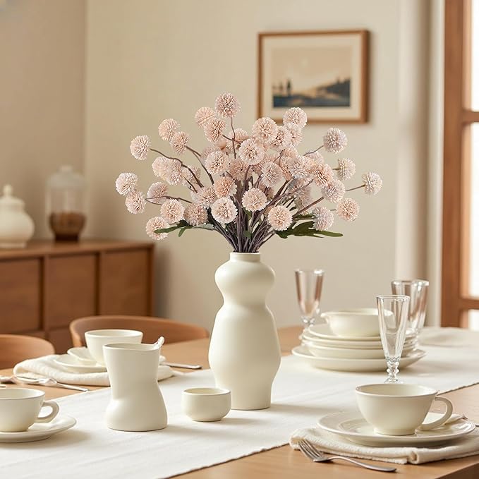 - QUALITY MATERIAL: These faux silk pompon m um artificial flowers are made of high quality simulated silk. The stems are made of wire and can be bent at will, very flexible, also can be cut to any length to match your vase