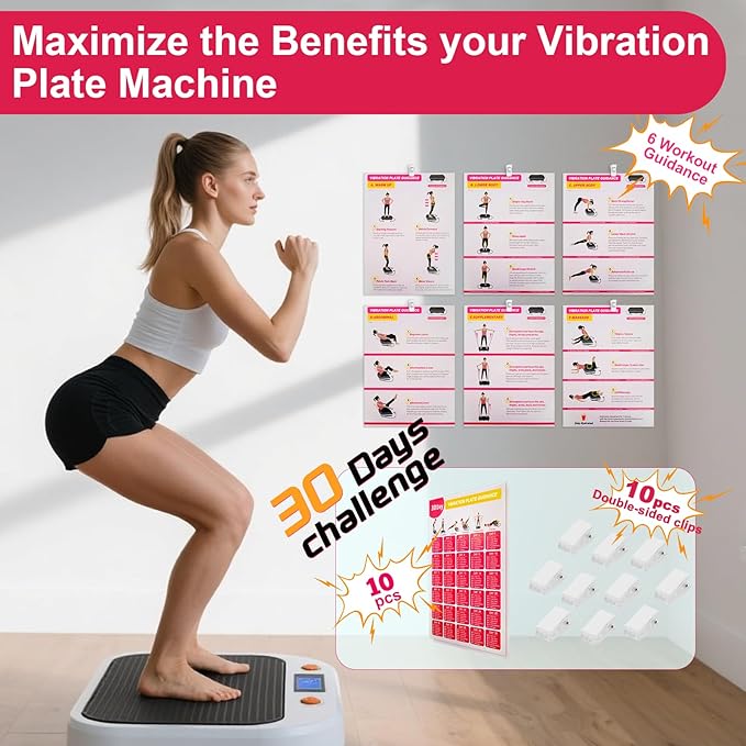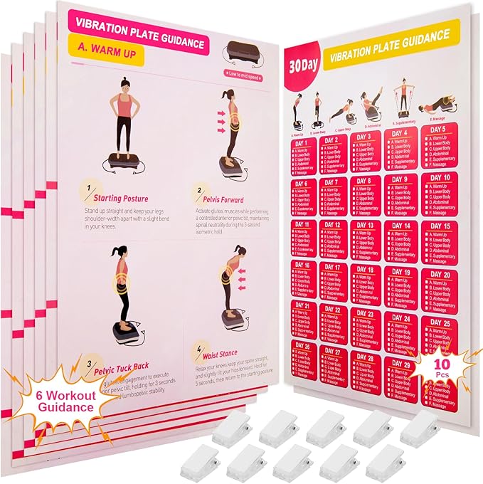 - ALL-IN-ONE VISUAL TRAINING GUIDE: This vibration plate exercise poster set offers a complete training solution with clear, step-by-step illustrations for proper form and positioning. Designed for all major vibration plate brands, it helps beginners and seasoned users get the most from their vibration workouts