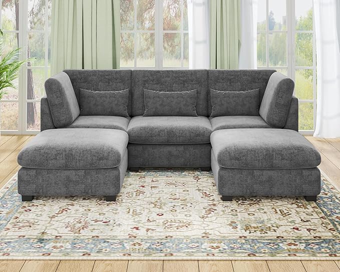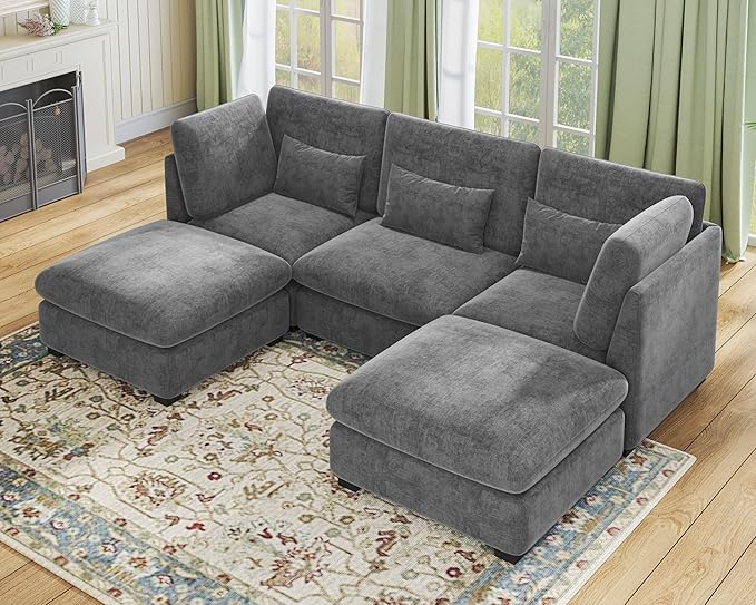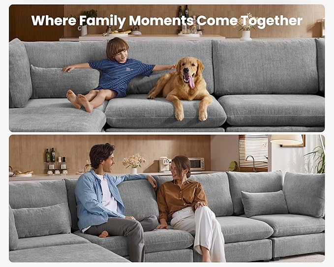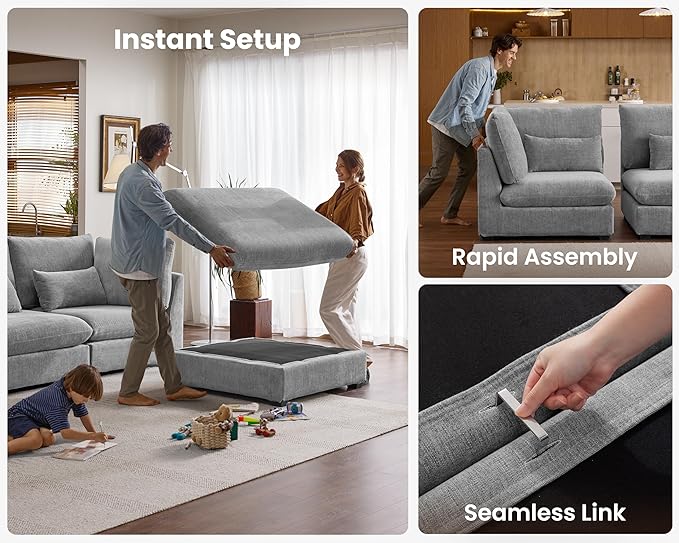 - 【Tool-Free Assembly in Minutes】Assemble your sofa in no time—no tools required! The modular design allows for quick and easy setup using high-quality U-shaped stainless steel connectors, ensuring a secure fit between each module. Reconfigure your sectional effortlessly and enjoy it in as little as 20 minutes. Perfect for those who value convenience and flexibility, this sectional offers a seamless assembly experience and provides total comfort from the moment it arrives