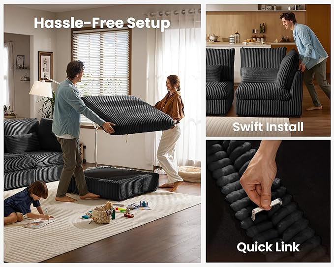 - 【Tool-Free Assembly in Minutes】Assemble your sofa in no time—no tools required! The modular design allows for quick and easy setup using high-quality U-shaped stainless steel connectors, ensuring a secure fit between each module. Reconfigure your sectional effortlessly and enjoy it in as little as 20 minutes. Perfect for those who value convenience and flexibility, this sectional offers a seamless assembly experience and provides total comfort from the moment it arrives
