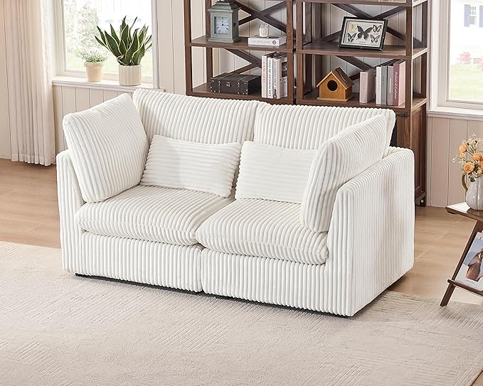 Oversized Modular Sofa, Extra Deep Cloud Corduroy Sectional Couch with Ottoman Chaise, Fluffy Corduroy 2 Seater Sofa Bed for Living Room, Villa (Loveseat Sofa, Corduroy White)