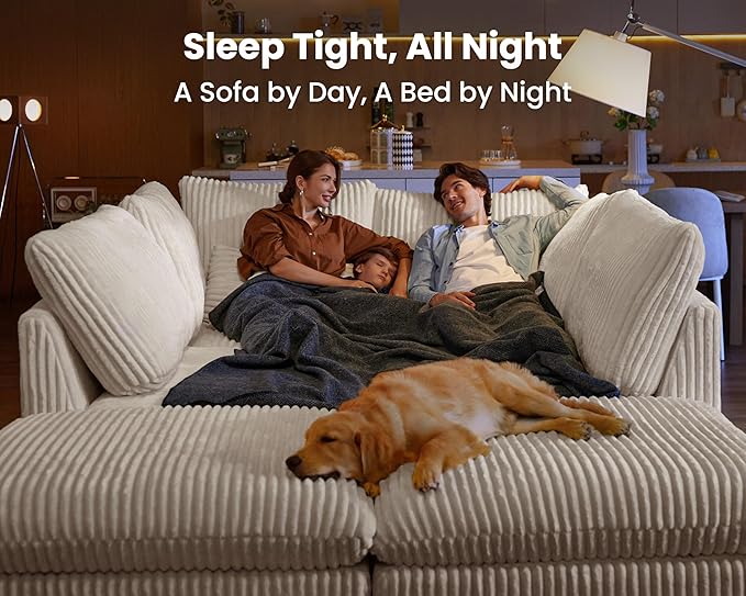 - 【Endlessly Modular for Tailored Space】Transform your space with ease using the fully modular design. Whether you need a cozy L-shape for movie nights, a U-shape or a spacious sleeper for entertaining, each piece reconfigures to fit your needs. This sectional adapts to any room, offering customizable comfort. Perfect for living rooms, home offices, or entertainment spaces, it provides flexibility without complicated tools. Enjoy seamless reconfiguration for relaxing, working, or entertaining