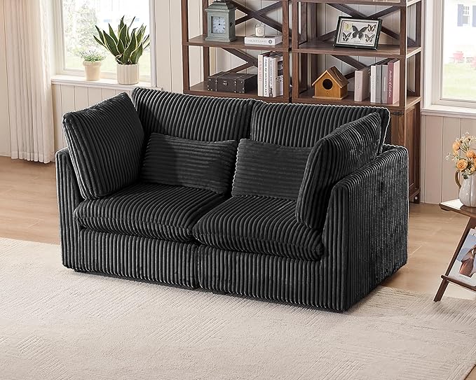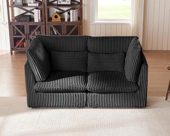 Oversized Modular Sofa, Extra Deep Cloud Corduroy Sectional Couch with Ottoman Chaise, Fluffy Corduroy 2 Seater Sofa Bed for Living Room, Villa (Loveseat Sofa, Corduroy Black)