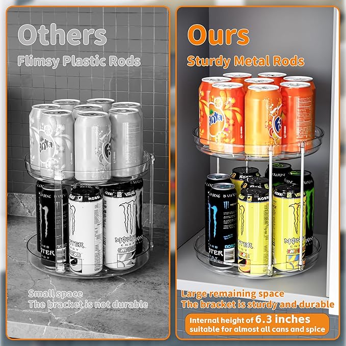 - 【Perfect Size Double Lazy Susan】Our lazy susan organizer Size:9.5'' diameter, 8'' height(Internal height 6.3'' ), our lazy Susan organizer is greatly for cabinet, kitchen, pantry, fridge, countertop, makeup or perfume organizer for bathroom, vanity, a medicine cabinet organizer and more