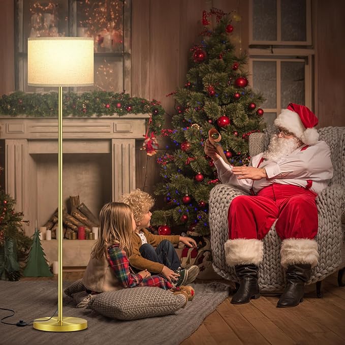 Ambimall 60'' Modern Floor Lamp with Shade, Tall Lamps for Living Room, Bedroom, Office, Dining Room, Beige Shade with Brushed Gold Pole(Without Bulb)
